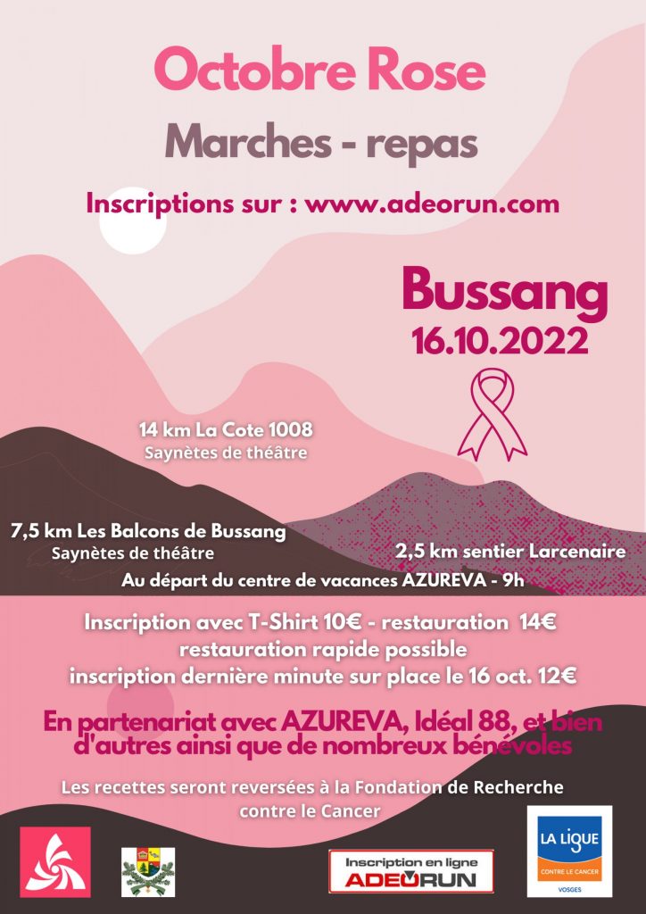 Dans le cadre d’Octobre Rose, dédié à la lutte contre le cancer du sein, BUSSANG EN ROSE organise 3 PARCOURS PEDESTRES le dimanche 16 octobre.