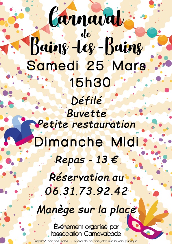CARNAVAL de BAINS-LES-BAINS le samedi 25 Mars !
