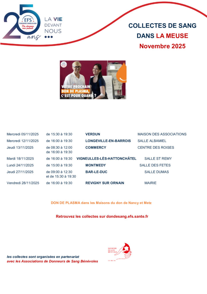 COLLECTES DE SANG DANS LA MEUSE EN NOVEMBRE