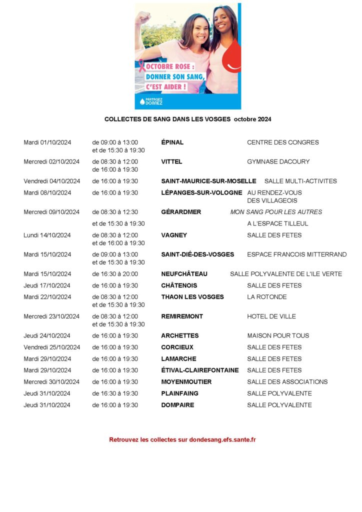 COLLECTES DE SANG EN OCTOBRE dans les VOSGES
