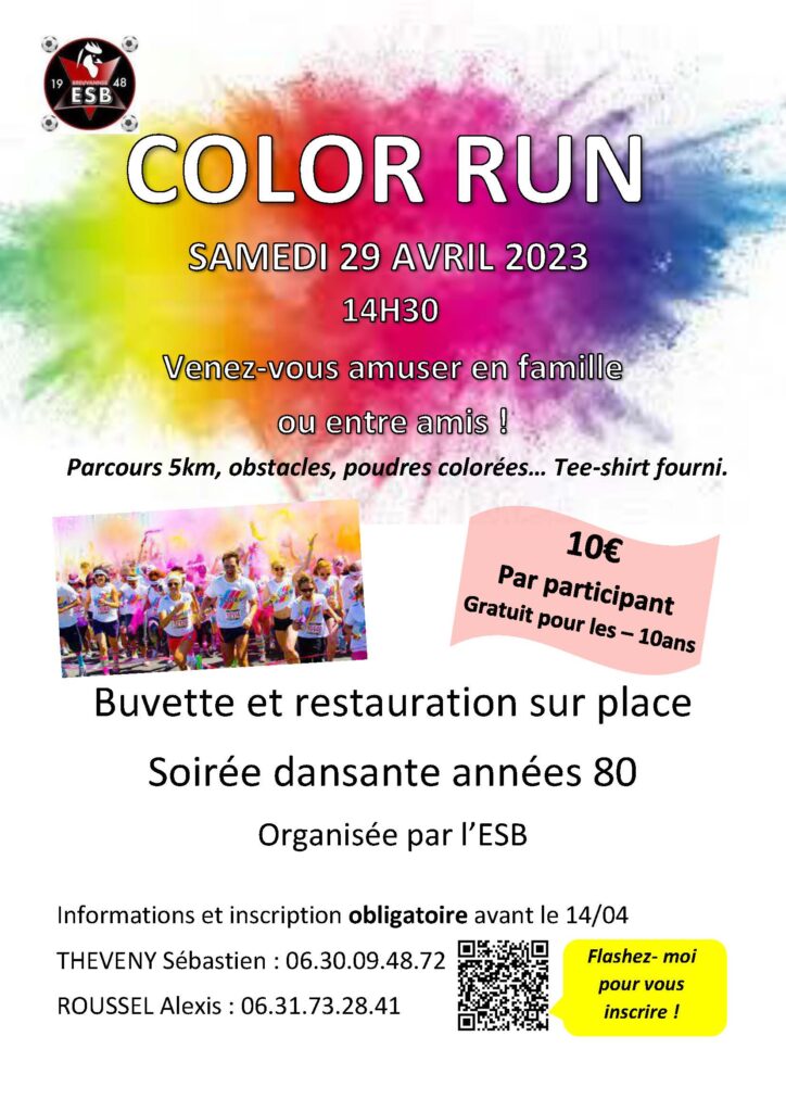 COLOR RUN à BREUVANNES-EN-BASSIGNY organisé par l’ETOILE SPORTIVE BREUVANNAISE le samedi 29 avril à 14h30 sur le TERRAIN DE SPORT de BREUVANNES.