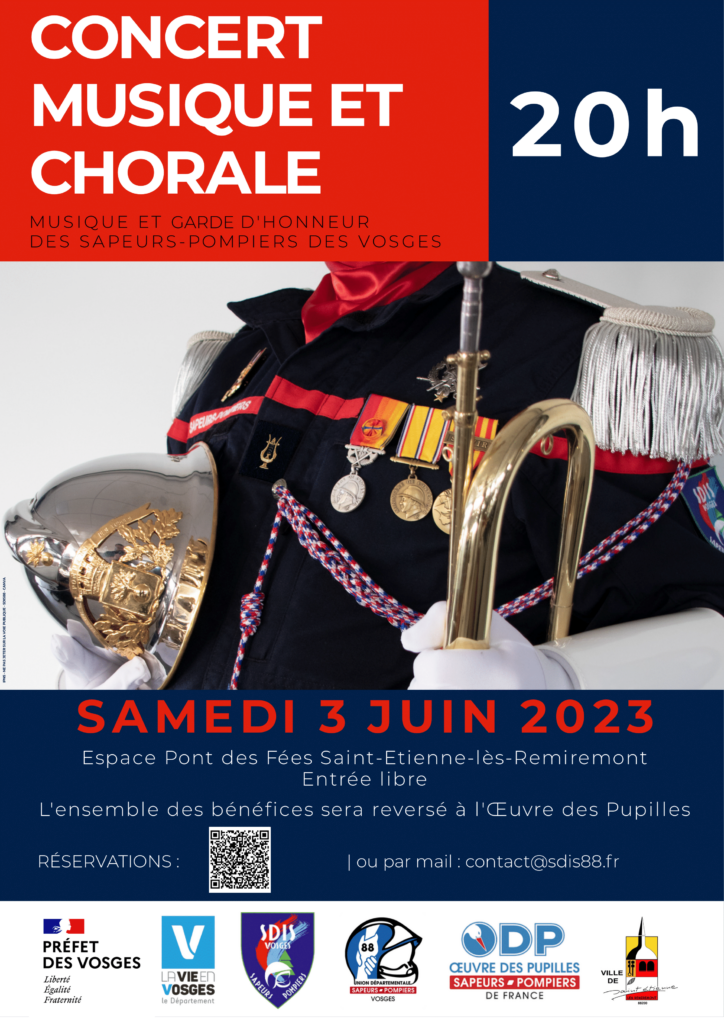 CONCERT CARITATIF DE LA MUSIQUE & DE LA GARDE D’HONNEUR DES SAPEURS-POMPIERS DES VOSGES le 3 juin à 20h00 à l’Espace Pont des Fées, à Saint-Etienne-lès-Remiremont. Chants et musiques militaires, mais pas seulement (venez écouter les sapeurs-pompiers) ! Entrée gratuite sur réservation à contact@sdis88.fr (ou flash du QR code sur l’affiche) Concert donné au profit […]