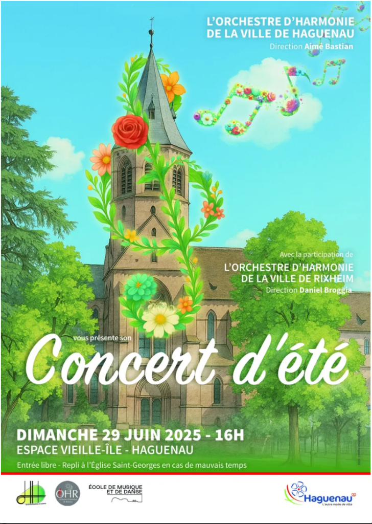 L’Orchestre d’Harmonie de la Ville de Haguenau vous invite à son traditionnel concert d’été. Au programme : un moment musical en plein air, festif et chaleureux, dans un cadre verdoyant.