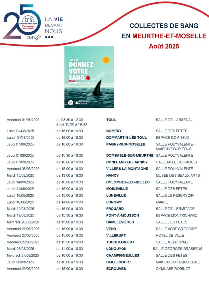 DON DU SANG EN MEURTHE & MOSELLE EN AOUT