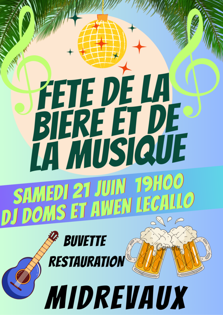 L’association « M TON VILLAGE » organise sa FÊTE DE LA BIÈRE ET DE LA MUSIQUE à MIDREVAUX, sur la place du village, samedi 21 juin. Début des festivités à 18h30 avec accordéon, la chanteuse Awen Lecallo puis DJ DOMS. Ambiance champêtre en plein air avec costumes alsaciens. Buvette et restauration sur place.