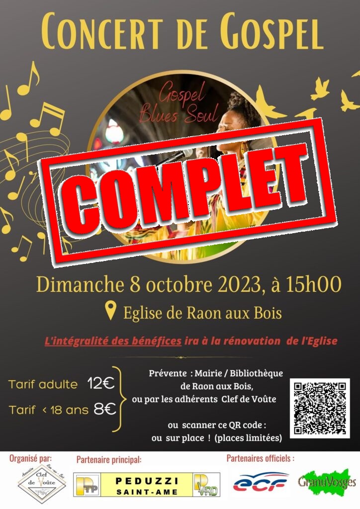 -CONCERT COMPLET !- L’association CLEF DE VOUTE organise un Grand concert de Gospel avec le groupe Blues soul Gospel (vu sur TF1 et France 3) dans l’Eglise de RAON AUX BOIS le dimanche 8 octobre à 15h00. Tous les bénéfices seront reversés à la rénovation de L’Eglise ! Venez partager ce grand moment (Happy Day […]