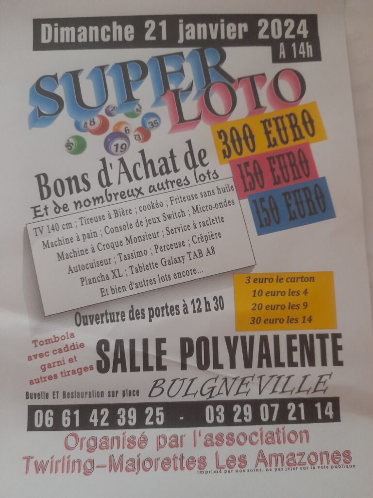 LOTO des TWIRLING MAJORETTES « LES AMAZONES » dimanche 21 janvier à la SALLE POLYVALENTE de BULGNÉVILLE.