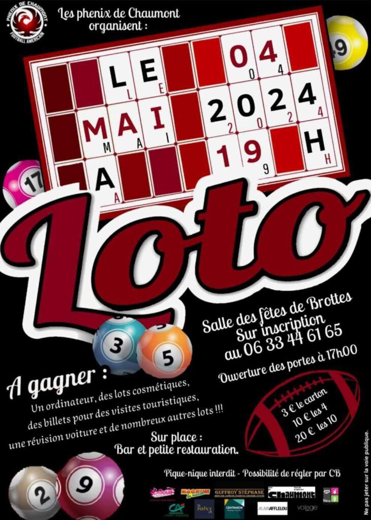 LOTO DES PHENIX DE CHAUMONT le SAMEDI 04 MAI à la Salle des Fêtes de BROTTES.