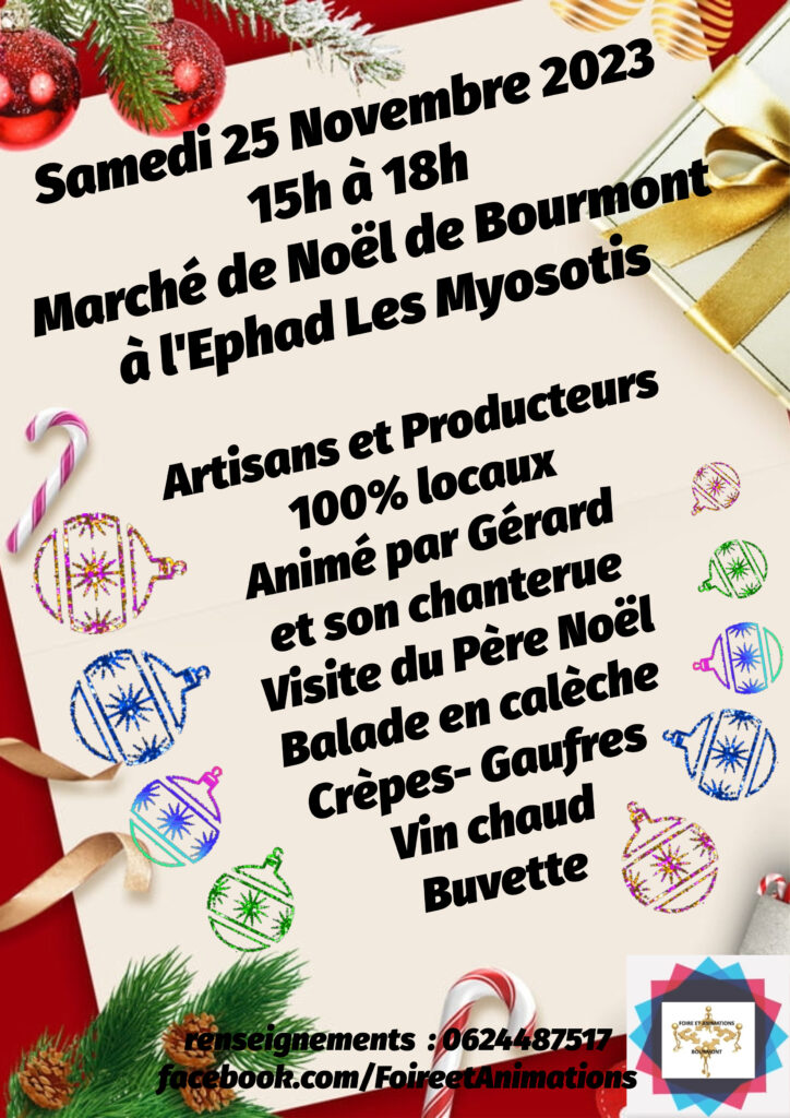 MARCHÉ DE NOEL à BOURMONT à l’EPHAD LES MYOSOTIS samedi 25 novembre de 15h à 18h (rue du stade).