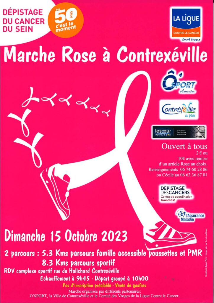 MARCHE ROSE à CONTREXEVILLE le dimanche 15 octobre avec :