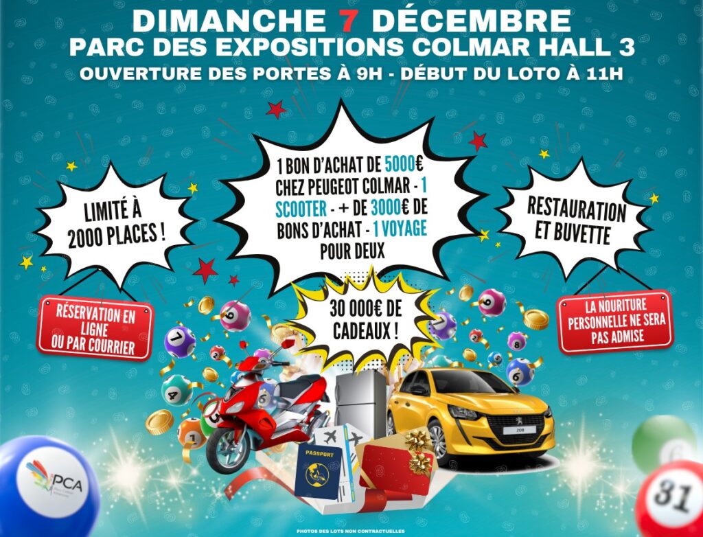 Le Pays Colmar Athlétisme organise l’un des plus grands lotos d’Alsace et vous propose de gagner des lots de folie à l’approche de NoëL. Rdv le dimanche 7 décembre au Parc des Expositions de Colmar dans le Hall 3 !