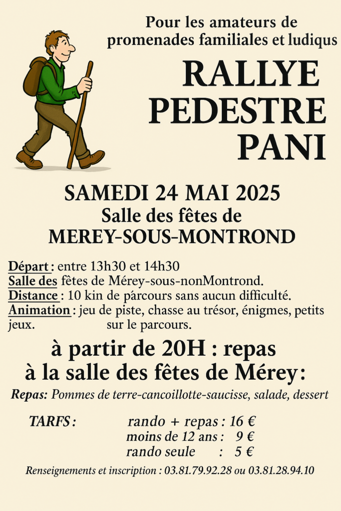 22ème édition du rallye pédestre de MEREY SOUS MONTROND le samedi 24 mai.