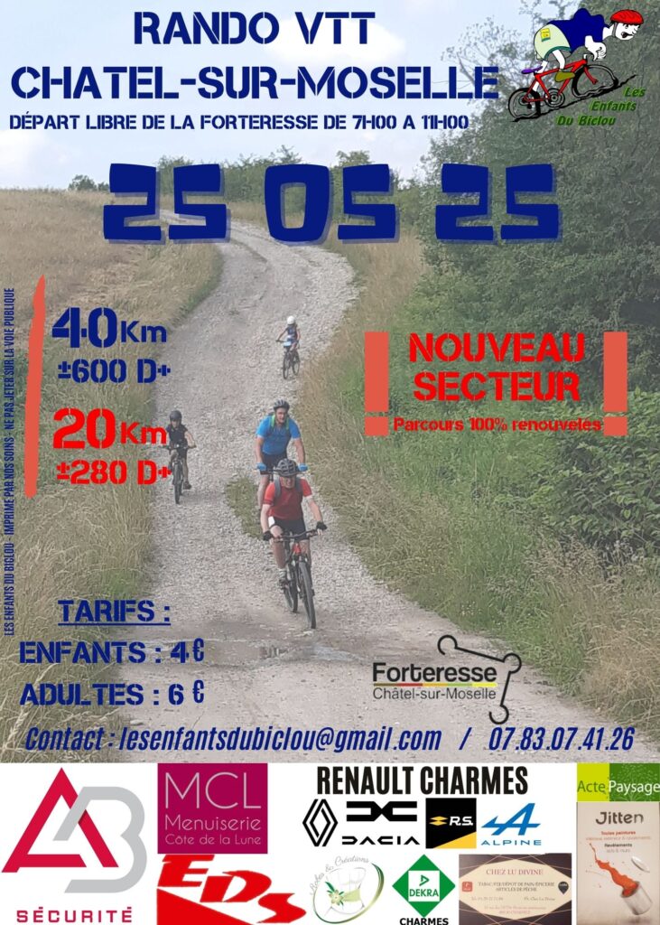 LES ENFANTS DU BICLOU organisent une rando VTT à CHATEL-SUR-MOSELLE, dimanche 25 mai.