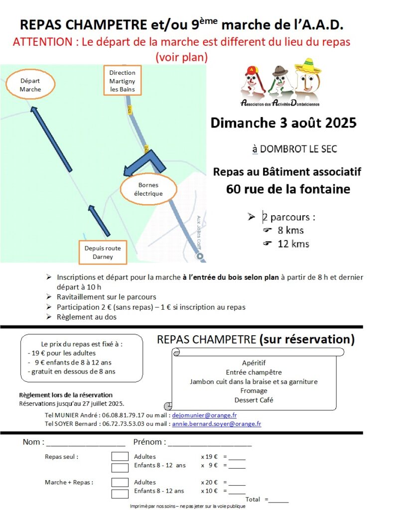 MARCHE & REPAS CHAMPETRE à DOMBROT LE SEC organisé par l’AAD le dimanche 3 août.