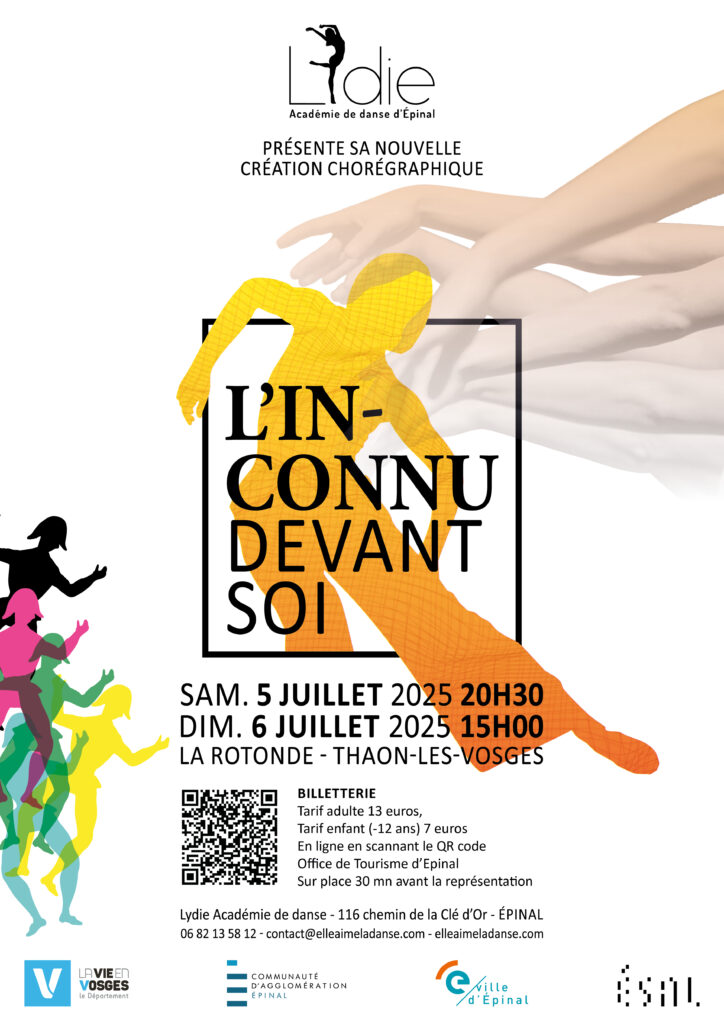 LYDIE – ACADEMIE DE DANSE présente sa nouvelle création : « L’inconnu devant soi » à la Rotonde de Thaon les Vosges. (Ce spectacle, écrit en collaboration avec l’autrice vosgienne Julia Billet revisite notre patrimoine emblématique : les images d’Epinal. Un spectacle « feel good » mêlant danse classique, contemporaine, hip-hop, comédie musicale, dans lequel les images […]