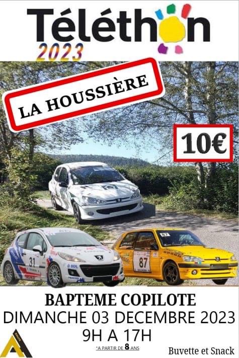 Baptêmes de copilote en auto de rallye au profit du Téléthon, 12 voitures de rallye disponibles pour faire les baptêmes de la Peugeot 106 à une Lancia.