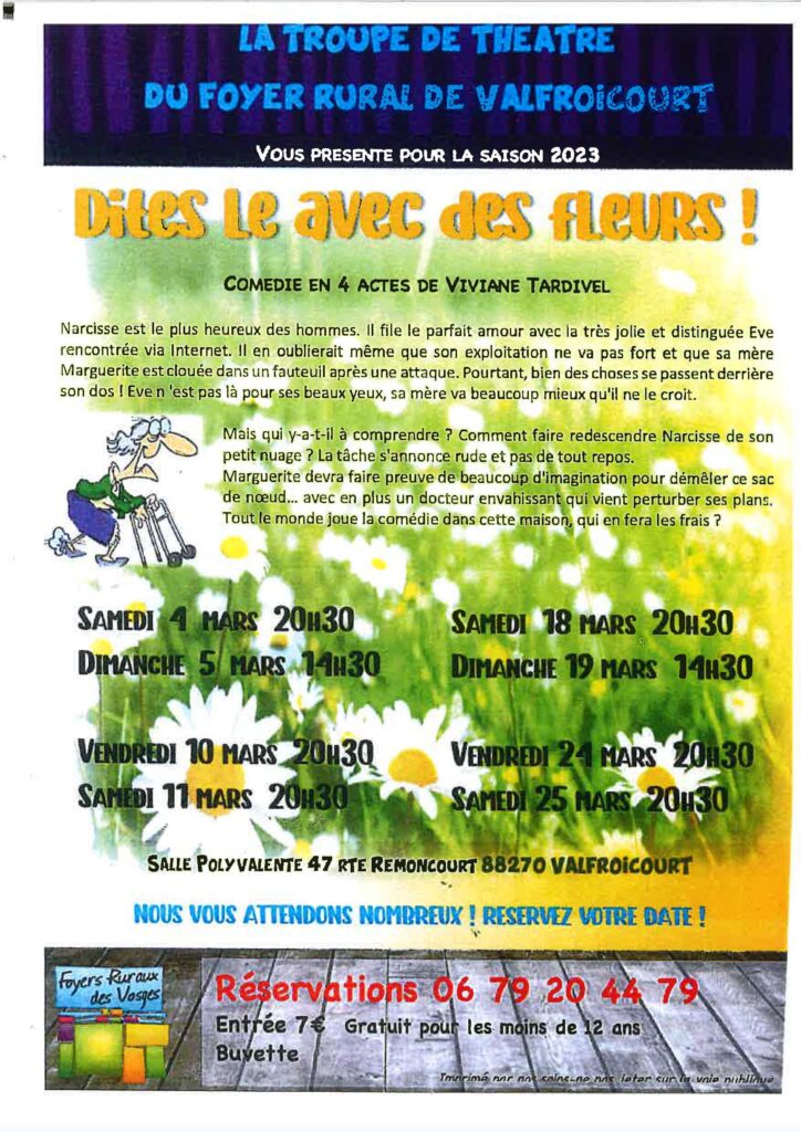 La TROUPE DE THEATRE du FOYER RURAL de VALFROICOURT présente DITES LE AVEC DES FLEURS !