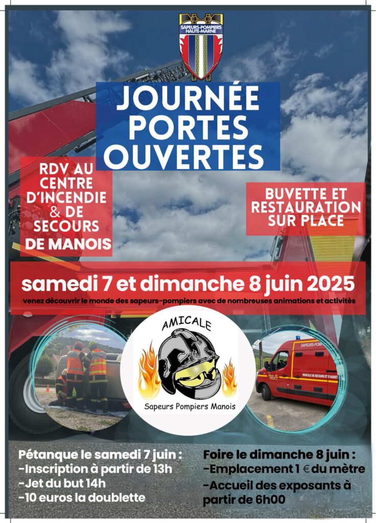Les SAPEURS POMPIERS de MANOIS (52) organisent leurs PORTES OUVERTES les 7et 8 juin.