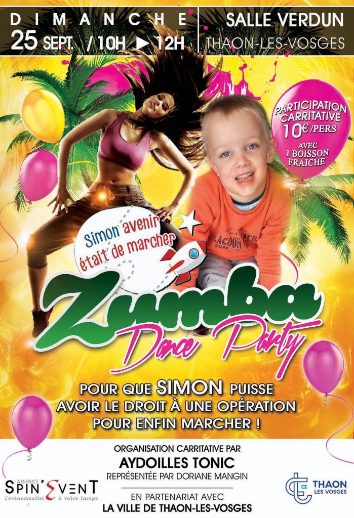 AYDOILLES TONIC organise une ZUMBA DANCE PARTY à THAON-LES-VOSGES afin de récolter des fonds au profit de SIMON, un petit garçon qui ne peut marcher, afin de lui obtenir des soins de rééducation et d’acquérir un appareillage spécifique canadien.