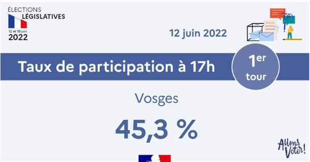 Dans les Vosges il est de 45,3% en hausse comparé à 43,25%.