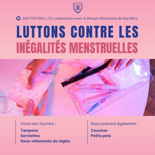 Le club de football spinalien a lancé une collecte solidaire pour soutenir les femmes. Sont récoltés des produits d’hygiène féminine, des couches et des petits pots pour bébés. Les dons seront ensuite reversés à la Banque Alimentaire des Vosges, située à Deyvillers.