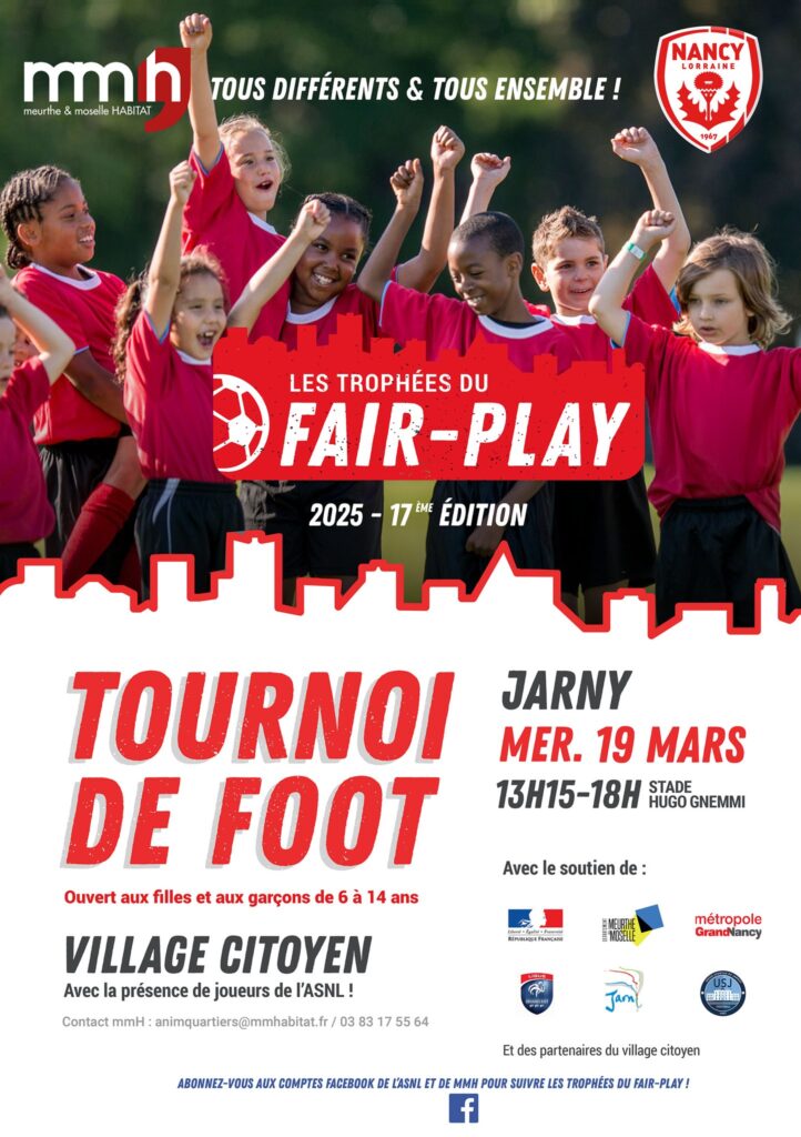 Les Trophées du Fair-Play signent leur retour en 2025 pour une 17e édition. Organisé conjointement par l’AS Nancy Lorraine et meurthe & moselle HABITAT, l’événement propose de réunir les jeunes joueurs de football, de 6 à 14 ans, pour un grand tournoi, en présence de joueurs de l’ASNL.