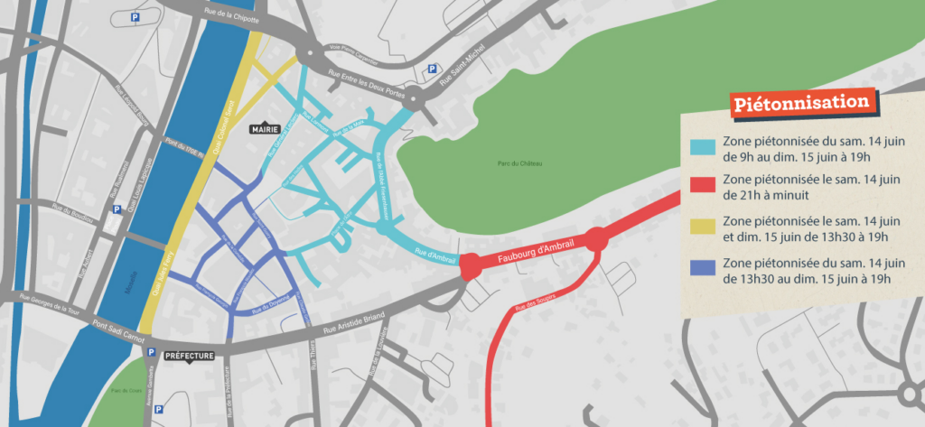 Enfin, le 14 juin de 21h à minuit, la rue des Soupirs et le Faubourg d’Ambrail seront temporairement inaccessibles.
