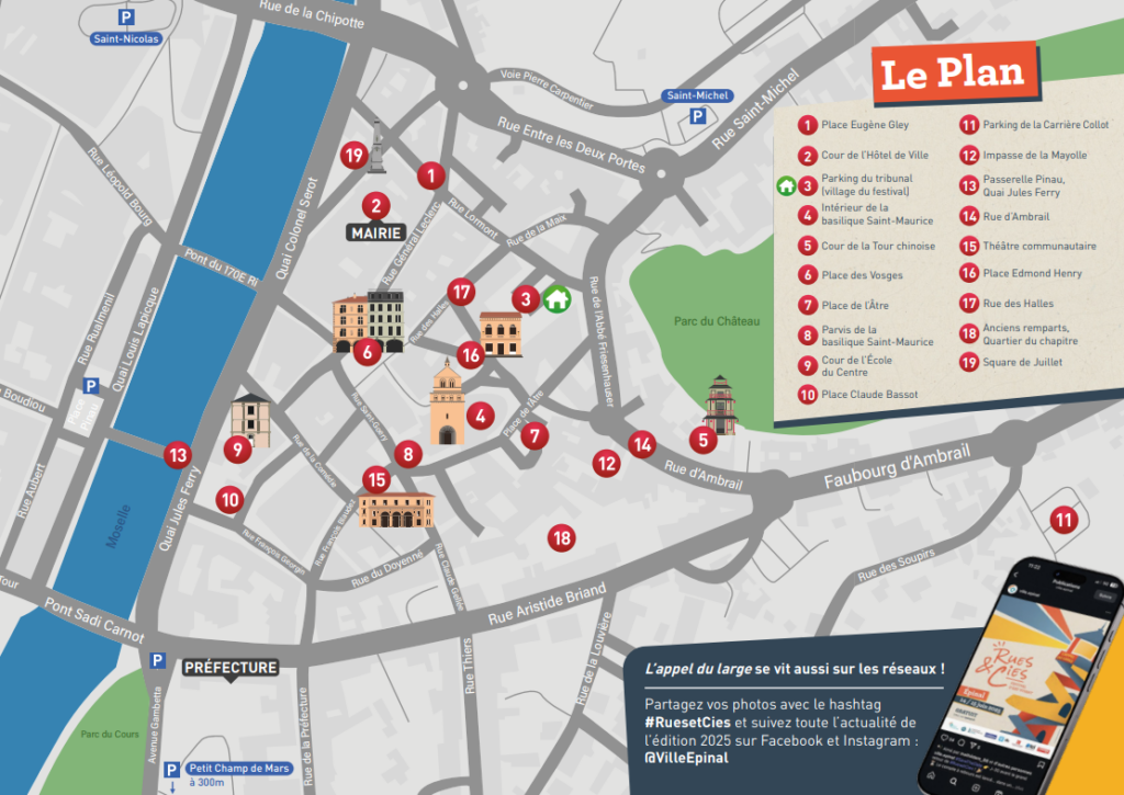 Les 14 et 15 juin, le cœur d’Épinal battra au rythme du festival Rues & Cies. Avec plus de 48 spectacles programmés dans les rues de la ville, une large zone du centre-ville sera totalement ou partiellement fermée à la circulation pour permettre le bon déroulement de l’événement et assurer la sécurité des milliers de spectateurs attendus.